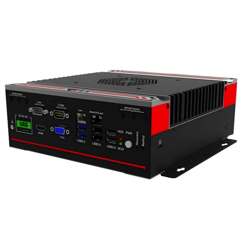 接口豐富 : 2*LAN(Intel),6*COM,支持T-MOD模塊擴展,8*GPIO(2*RJ45/12DI+12DO三選一擴展),2*USB3.0+6*USB2.0 1*VGA,1*HDMI,1*DP,1*遠程開關,1*一鍵還原,1*一鍵備份,1*SIM槽,1*LINE IN,1*LINE OUT,1*MIC,1*2.5寸硬盤位,1*M.2(KEY-M,2280,PCIEx4 支持SATA),1*M.2(KEY-B,3042/3052,PCIE支持4G),1*MINI PCIE(全高,PCIE+USB2.0信號,支持WiFi/BT)